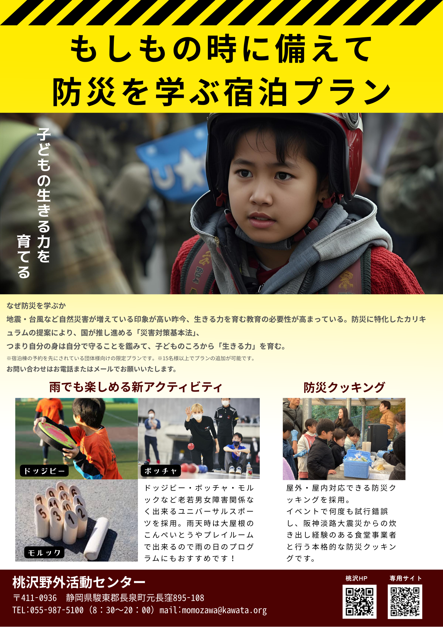 台風等災害時のみ食堂にて食堂業者に事前予約した飯盒炊爨で行うカレー等の作成依頼をできますが、ご利用日前日の17:00までにご連絡をいただきませんと対応できません。(当日対応不可)