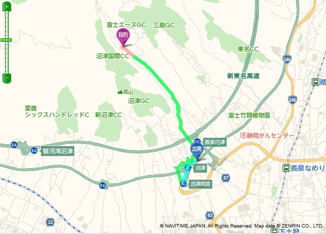 もしご不安な場合は、以下のナビタイムや車のカーナビをご利用いただくと、沼津インターから約13分で到着できます。