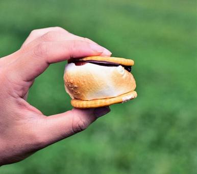 そして、デザート代わりに、マシュマロとクラッカーを使って作るキャンプの定番おやつ「スモア」も作ります。