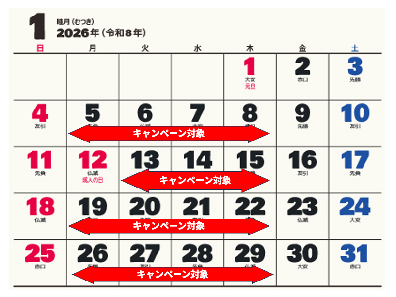 キャンペーン対象日は下図をご参照ください。