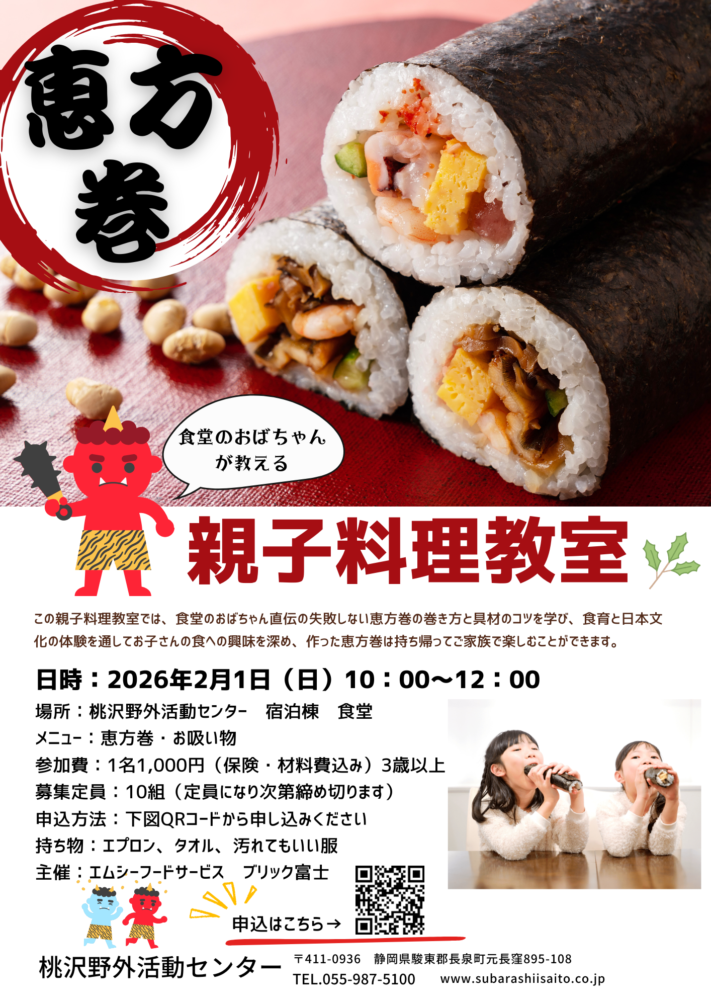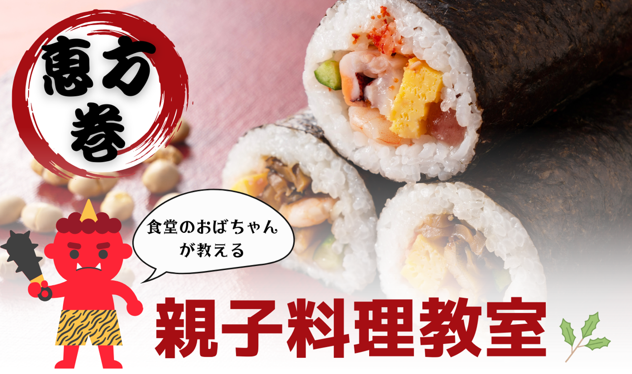 家族で楽しく日本の伝統行事「節分」を体験しませんか? 今回は、桃沢の食を支える「食堂のおばちゃん」が、美味しい恵方巻の作り方をイチから丁寧に教えます!