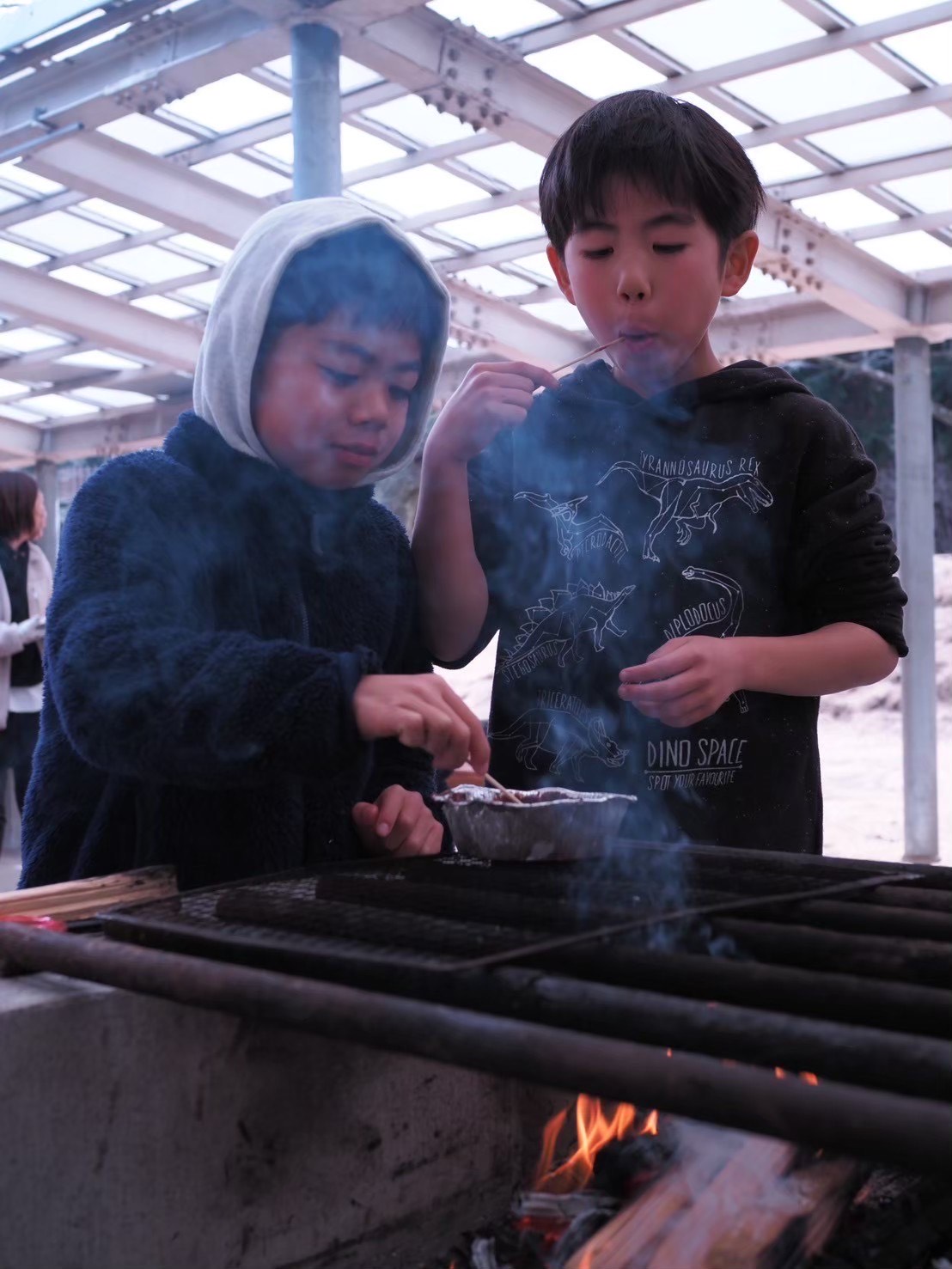 そこに焚火の炎を囲みながら熱々のチョコフォンデュつくり。どちらもおいしいこと間違いなしです。